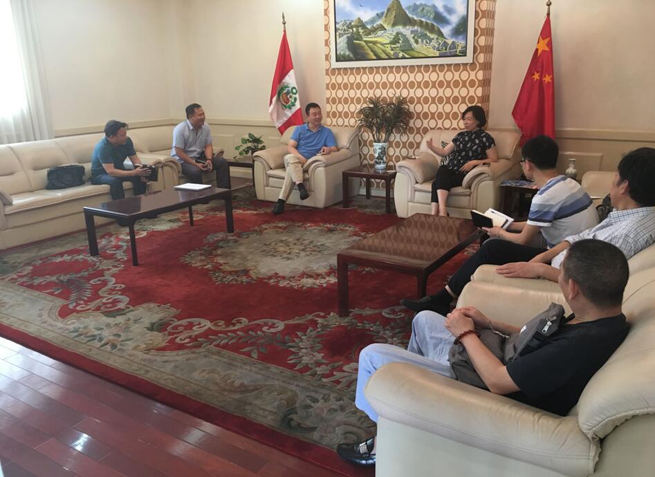 考察團隊會見中國駐秘魯大使館經濟商務參贊處郝沁梅參贊(右四)
