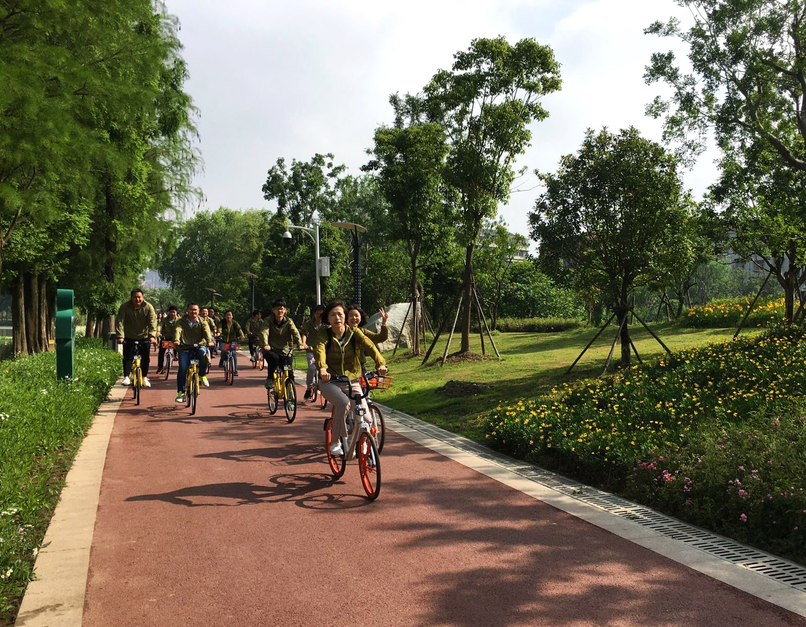 五月的清晨涼風(fēng)習(xí)習(xí),天氣爽朗。上午八點(diǎn)半,大家統(tǒng)一著裝,齊聚墨水湖公園,黨支部書(shū)記周紅一番激情飛揚(yáng)的致辭迎來(lái)了本次活動(dòng)的重點(diǎn)——騎行參觀我公司承建的墨水湖公園項(xiàng)目。