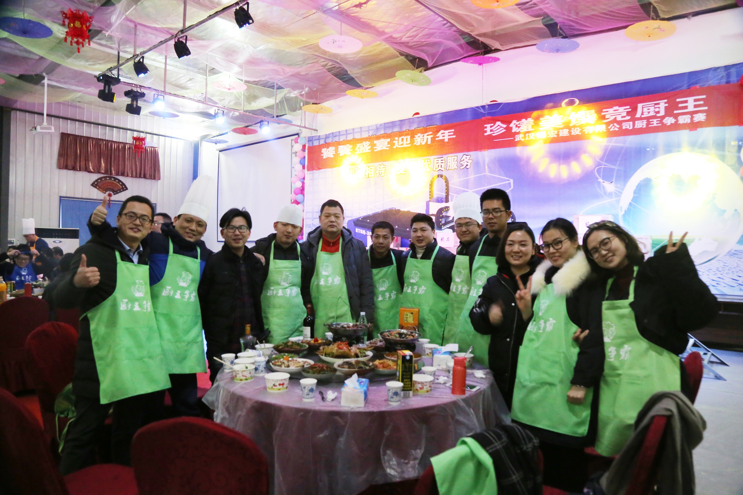 賽前活動既充滿競爭更洋溢著歡樂,隨后的廚藝比拼作為活動的壓軸戲份,各個小組更是紛紛拿出了看家本領。原以為大家平常忙于工作,廚藝難免生疏,萬萬沒想到,一匹匹黑馬橫路殺出,他們那熟練的姿勢、犀利的刀法驚呆了身邊的小伙伴,引得紛紛高呼“高手在民間”。烹飪過程中,你燒火、我掌勺、他端菜,各個小組內部分工清晰,配合默契,不僅在有限的時間內分別完成了至少10道菜(且必須有雞、有魚、有丸子)的目標,更做到了色、香、味、形、意俱全,做法更是涉及多個菜系。在隨后的佳肴品嘗過程中,各個小組紛紛推出招牌大菜,如地鍋雞、如魚得水、一掌定乾坤等并登臺講解菜肴寓意。經過大眾評審團的綜合評判,最終,第三小組成為了本次“廚王爭霸賽”的冠軍得主,全體職工為他們舉杯慶賀。