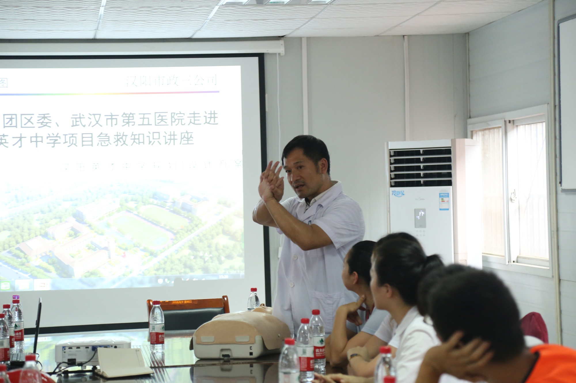 8月的武漢,炎熱依舊,為了給職工帶來一絲清涼,團區委及五醫院一行人為職工帶來了一批防暑降溫飲品及相關日用品,幫助公司職工在高溫天氣里正常開展建設工作。隨后,針對施工現場工作環境,五醫院急診科主任鄭先念醫生開展了專題安全講座,重點針對工地易發的中暑、觸電、高墜、物體打擊等安全事故的救援方式進行了通俗易懂的講解,糾正了一些救援過程中常見的錯誤做法,進一步提升了公司職工及廣大工友的安全救援意識及技能。