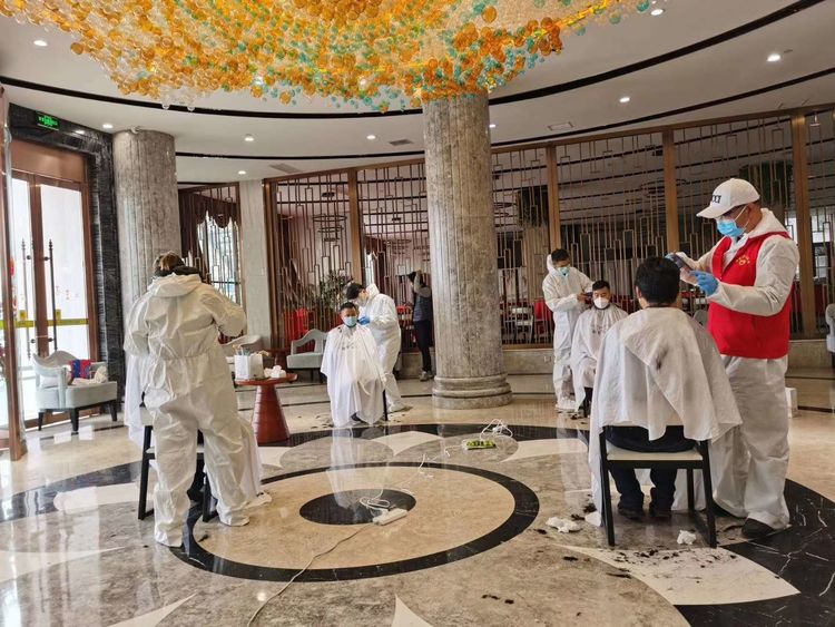 暖心!博宏建設組織“發型師”志愿者為防疫項目建設一線人員理發