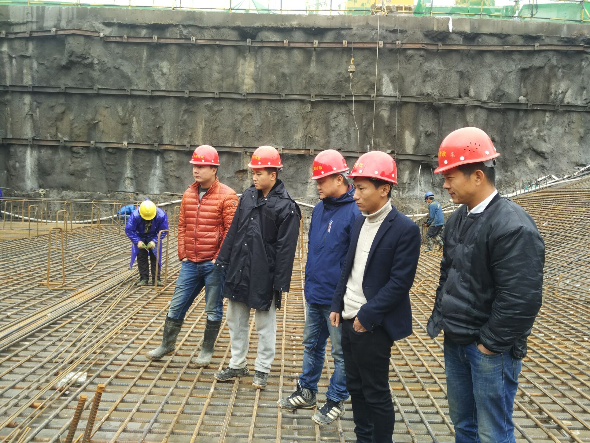 張杰(右二)指導現場施工