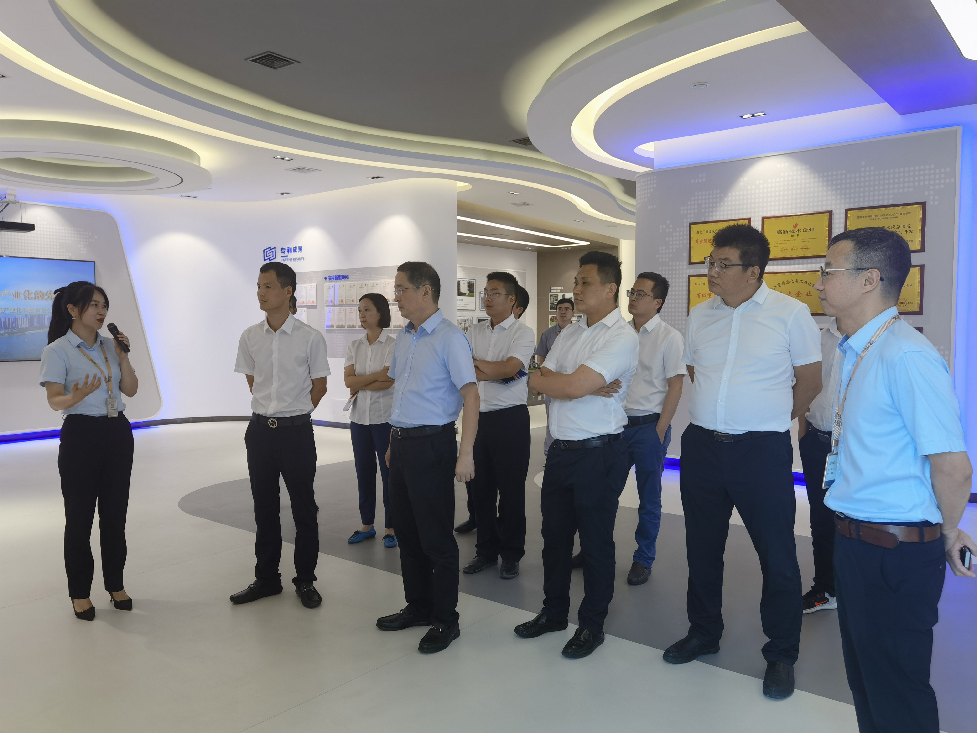 上午,鄒勇一行首先來到廣盛集團旗下的合資公司——湖北廣盛建筑產業化科技有限公司,該公司是一家集建筑設計、生產、施工、研發、培訓于一體的裝配式建筑國家高新技術企業,具有較強的裝配式建筑預制構件的生產、安裝能力。鄒勇一行走進企業展廳、裝配式構建樣板區、裝配式構件生產區進行參觀。