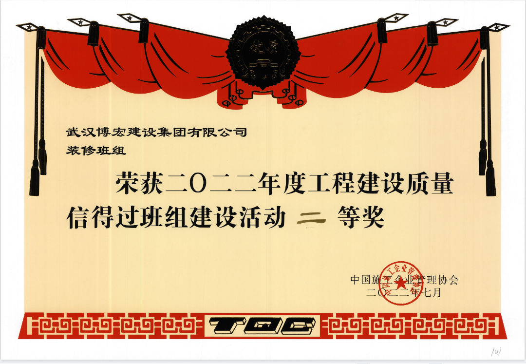 本次獲獎(jiǎng)是對(duì)公司質(zhì)量管理水平的高度認(rèn)可。博宏建設(shè)集團(tuán)將以此為契機(jī),積開展質(zhì)量信得過班組建設(shè)活動(dòng),打造精品工程、品牌工程。