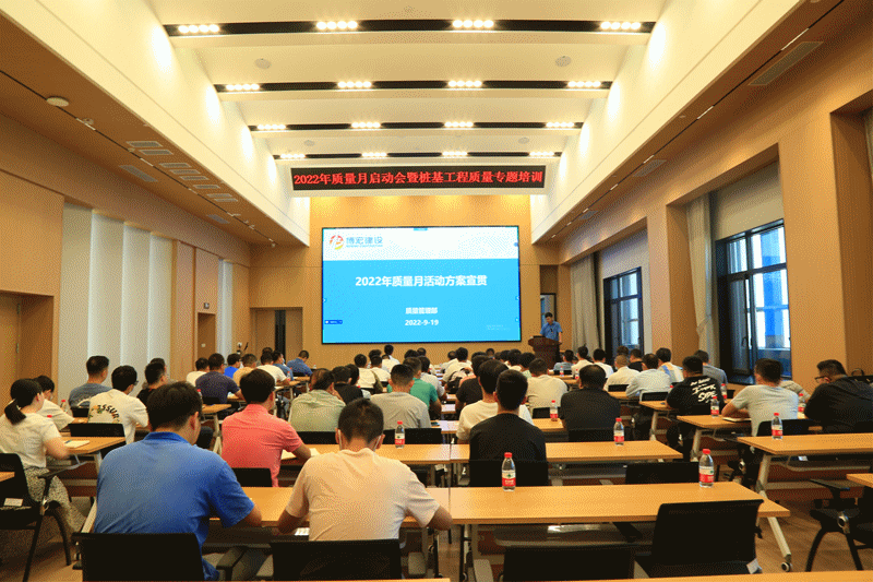 2022年9月19日,為積極響應(yīng)集團公司關(guān)于實施質(zhì)量強市戰(zhàn)略的工作要求,提高公司項目一線員工參與質(zhì)量管理的積極性,切實提升質(zhì)量管理水平,博宏建設(shè)集團開展以“推動質(zhì)量變革創(chuàng)新,促進質(zhì)量強國建設(shè)”為主題的2022年質(zhì)量月啟動會暨樁基工程質(zhì)量專題培訓(xùn)會,項目經(jīng)理、技術(shù)負責(zé)人、生產(chǎn)經(jīng)理、質(zhì)檢員等崗位員工參加了本次會議。