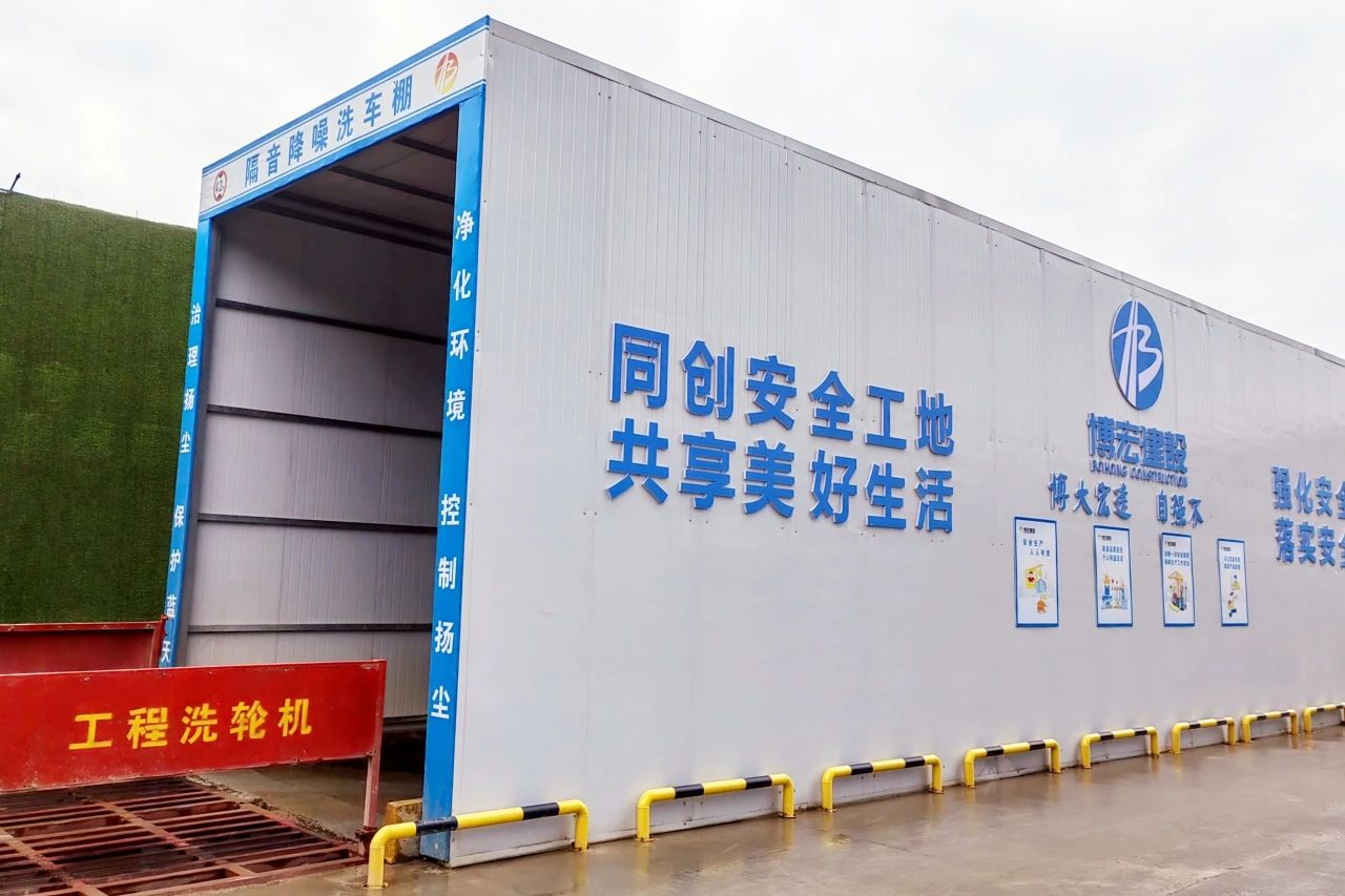 開工伊始,該項目即確立了創建省市建筑工程安全文明施工現場的目標,按照相關要求進行規劃布置,施工現場道路全硬化,依托臨時綠化打造花園式工地,配置太陽能路燈噴淋一體化設備、隔音降噪洗車棚、新能源移動灑水車、揚塵監測設備等,守住揚塵治理底線,實現工地揚塵治理常態化監管。