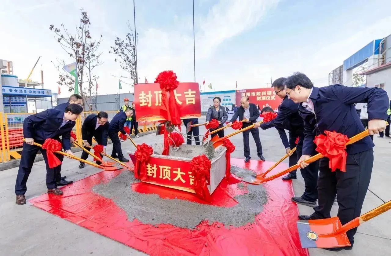 2023年11月8日上午,漢陽市政科研中心封頂儀式在項目現場隆重舉行。漢陽區國資局黨組書記、局長嚴俊,漢陽區建設局黨組成員、漢陽區建管站站長王晟,漢陽市政集團黨委副書記、副董事長虞志鵬,總工程師荊武及相關部門負責人,兄弟單位主要領導,博宏建設集團黨委書記、董事長、總經理鄒勇,常務副總經理奚雷等相關領導,以及項目一線建設者共計60余人共同見證項目封頂。