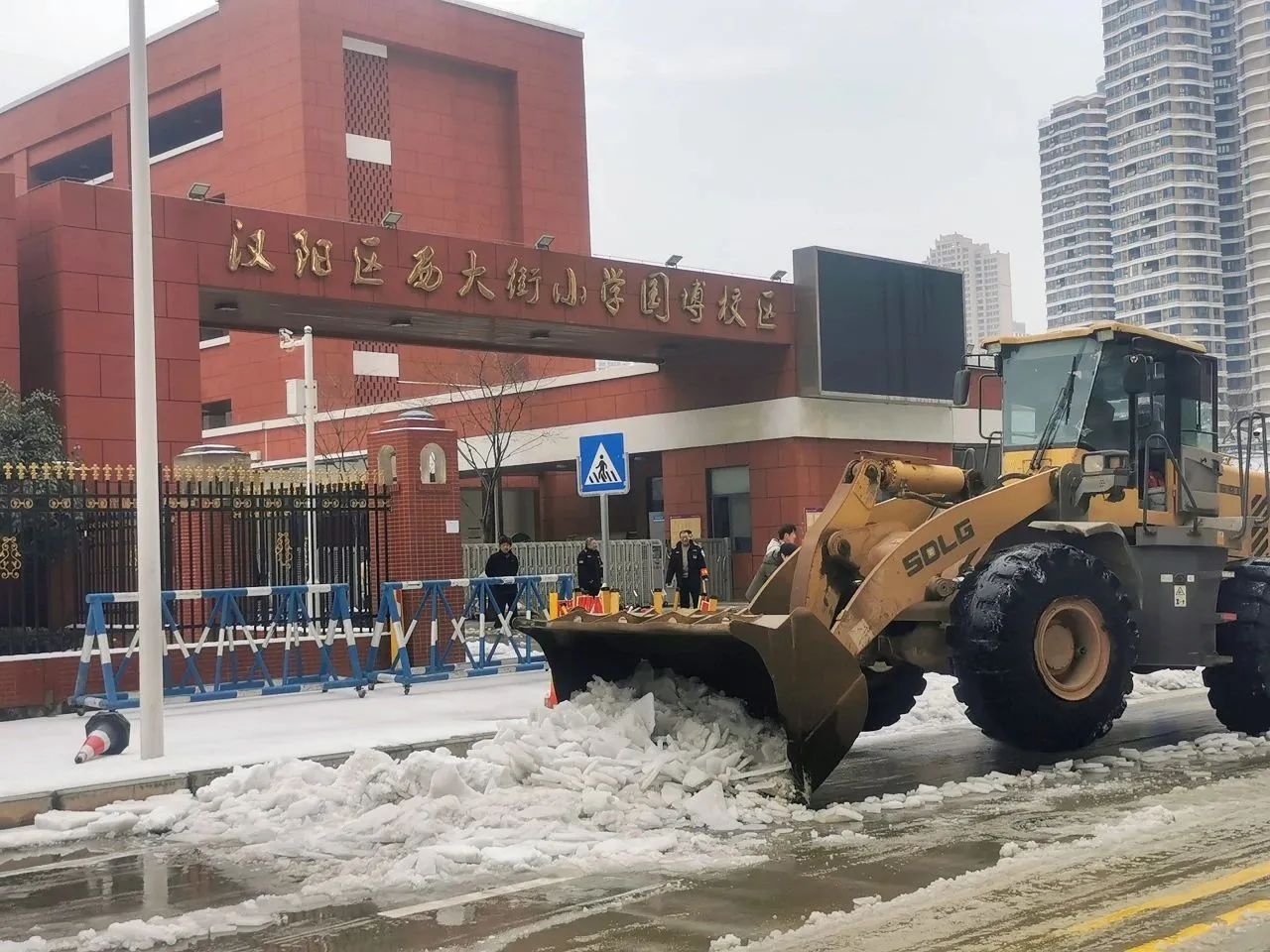 本次應急行動累計出動61人次,鏟車14臺,巡查車輛7臺,撒鹽車輛3臺,撒融雪劑0.5噸,共對五里墩小學、翠微中學、七里小學、武漢市第三中學、西大街至誠小學、墨水湖小學東校區(qū)等八所學校道路的積雪進行了清理,并鏟除路面結冰。
