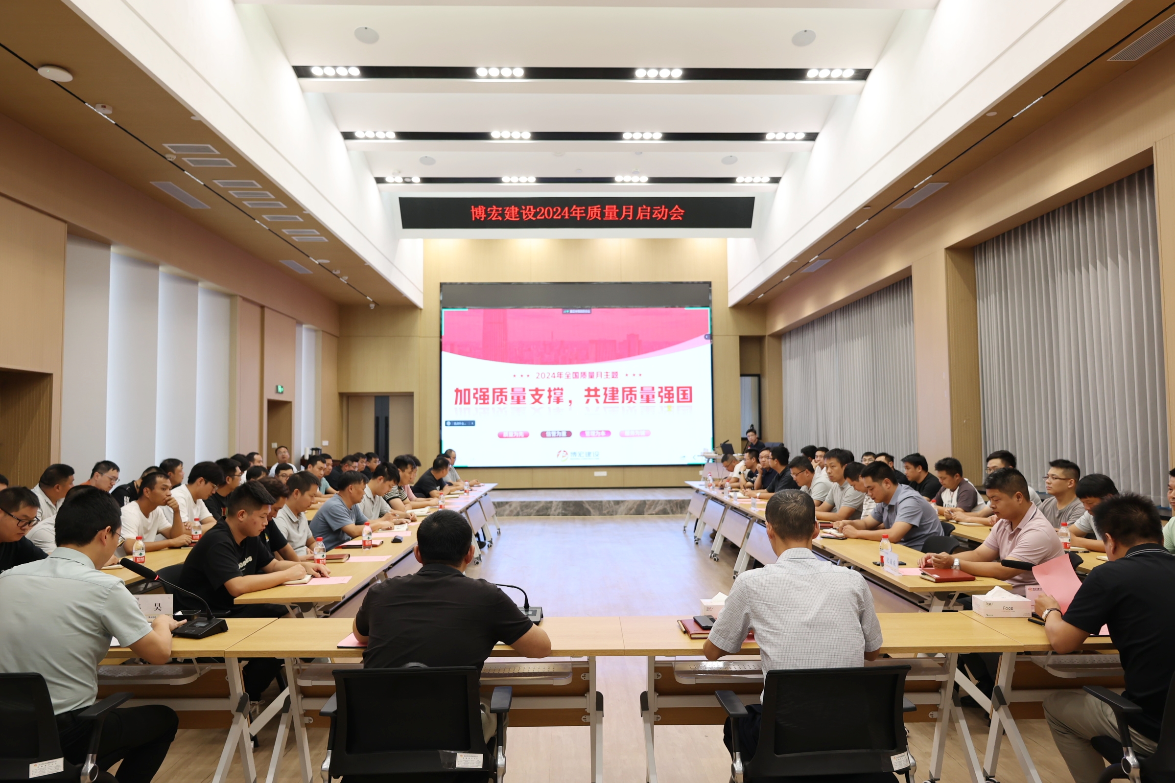 8月29日下午,博宏建設舉辦以“加強質量支撐,共建質量強國”為主題的2024年“質量月”啟動會,黨委書記、董事長、總經理鄒勇,總經理助理李暉,市內外各項目部負責人及質量崗位人員90余人參與活動,集團質安部部長程振東應邀出席本次活動。會議由公司質量管理部部長姜昊主持。